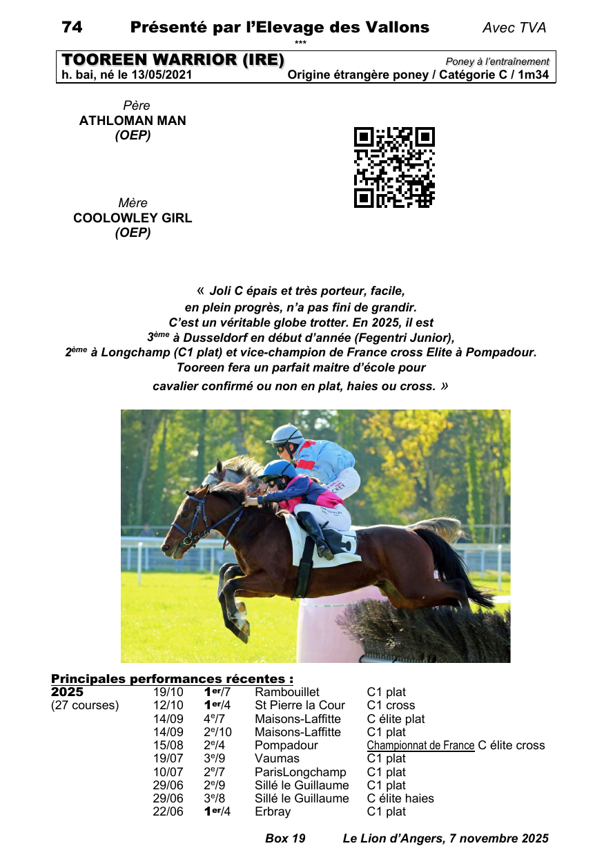 Tooreen Warrior, + 1 vict. en C1 plat à Rambouillet (19/10) (7 partants).